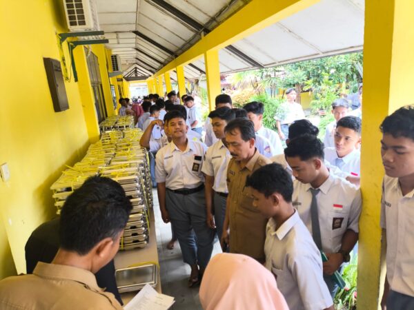 SMK NEGERI 1 TELUK KUANTAN – belum lama ini terjadi kecelakaan di teluk kuantan yang di alami oleh siswa magang kelas XI a.n Raga Irawan (alm), BPJS Ketenagakerjaan memberikan santunan kepada orang tua a.n Raga Irawan yang dilaksanakan di SMKN 1 Teluk Kuantan setelah upacara bendera senin pagi usai, penyerahan santunan ini disaksikan oleh kepala sekolah Bapak Hurdisman, S.Pd dan seluruh siswa dan siswi serta guru di lapangan upacara tersebut, untuk gambar silahkan lihat dibawah ini.